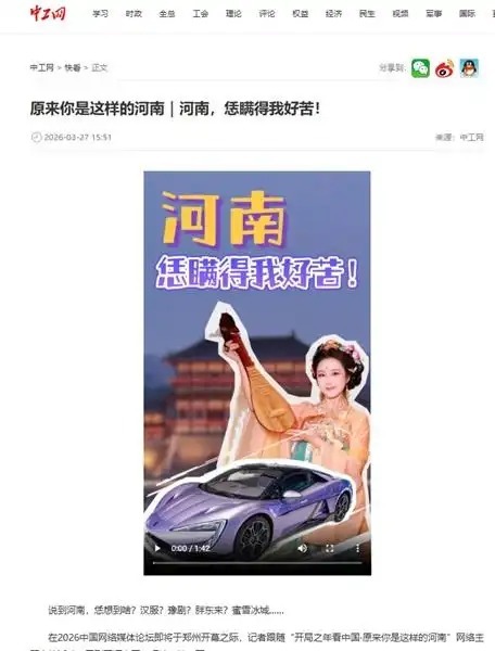 (图片来源:中工网活动新闻报道页面截图)仲春时节,“开局之年看中国·原来你是这样的河南”网络主题宣传活动正在进行。从3月23日到4月3日,中央及省级媒体、正能量网络名人、在豫留学生等180余人参与其中。他们深入郑州、开封、洛阳、许昌、漯河等地,用脚步丈量中原,用镜头记录河南。而比报道本身更动人的,是网友们在评论区留下的真情实感。“一眼千年,河南到底有多少‘国家宝藏’?”“一部河南史,半部中国史,不愧是豫!”“上班暂停,我要去趟河南~”“看不够,根本看不够!”——这是网友们共同的感叹。你眼中的河南,是什么样的?是“伸手一摸就是春秋文化,两脚一踩就是秦砖瓦”的文明厚土?是人口大省、农业大省的“标签化”印象?还是偶尔被简化的几个关键词?在大家眼中,河南不止一面。