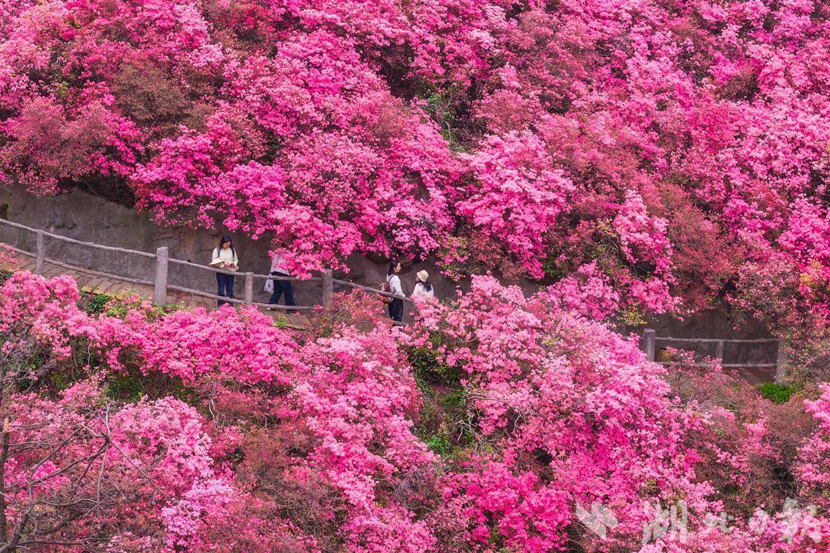 最美人间四月天,2026年4月1日,武汉黄陂云雾山万亩野生杜鹃进入盛花期,花宇山、花海等核心赏花点漫山红遍,蔚为壮观。这里是华中规模最大的野生杜鹃群落,有映山红等7个品种。依托立体气候,杜鹃梯次开放,赏花期长达50天。海拔200米花宇山正值最佳观赏期,400米花海宜取景,700米花洋花期可延续至5月初,方便游客错峰出游。(湖北日报全媒记者 倪娜 通讯员 黄宣 摄)